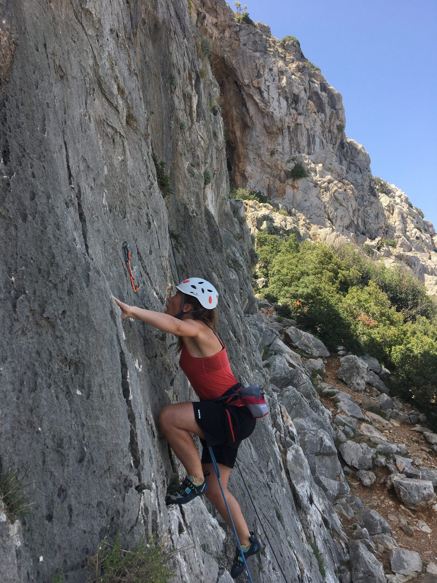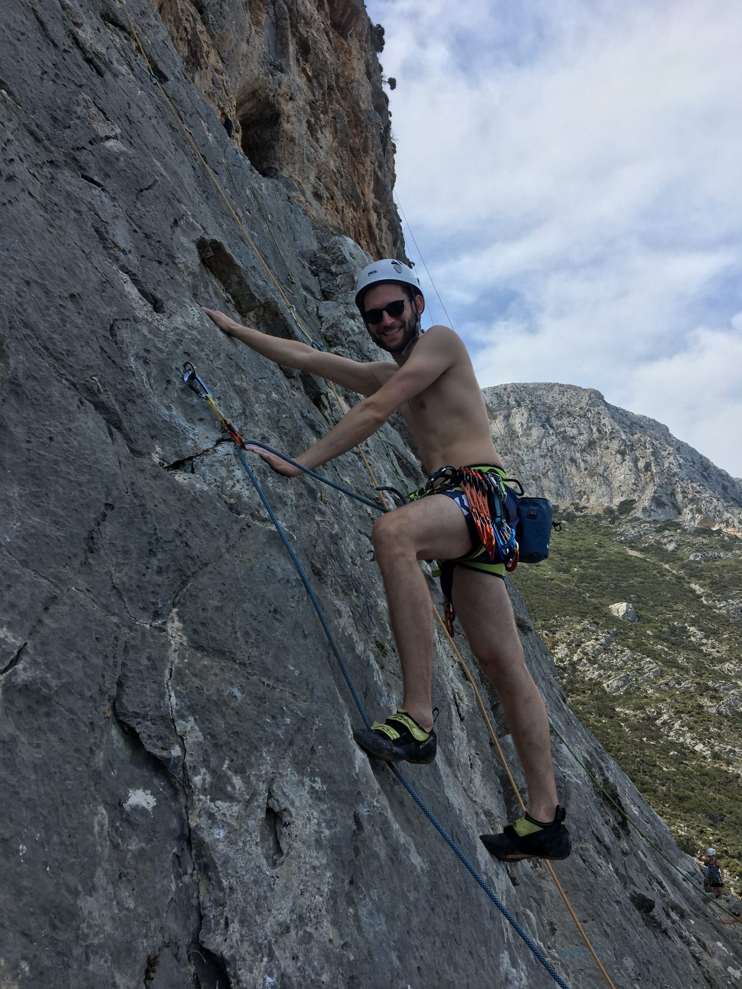 Als erster Klettersektor stand Lambda auf Telendos am Programm. Mit Routen von 4 bis 7b war auch hier wieder für jeden etwas dabei. Neben den frechen Ziegen waren doch leider auch „ein paar“ andere Kletterer am Fels, sodass wir durchaus froh waren so früh dort gewesen zu sein. Am Nachmittag querten wir die Insel noch zum Sektor Eros, wo wir erneut im Schatten die unglaublichen 40m Routen genießen konnten. Hier ging es etwas schwerer von 6a bis 8a zur Sache und jeder konnte sich noch richtig schön platt machen. Leider ging uns am Fels ein Clipstick „verloren“ – ein Mysterium, das sich später noch aufklären sollte.