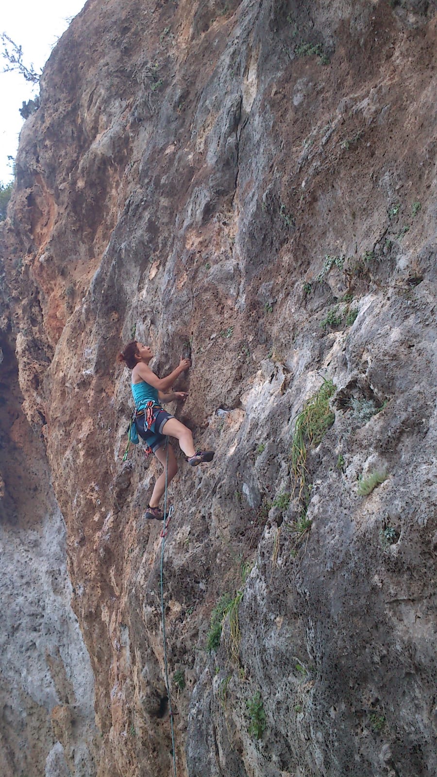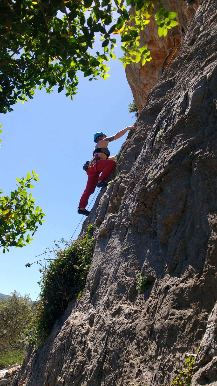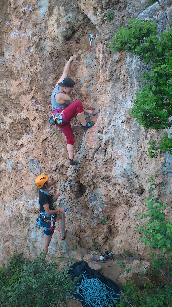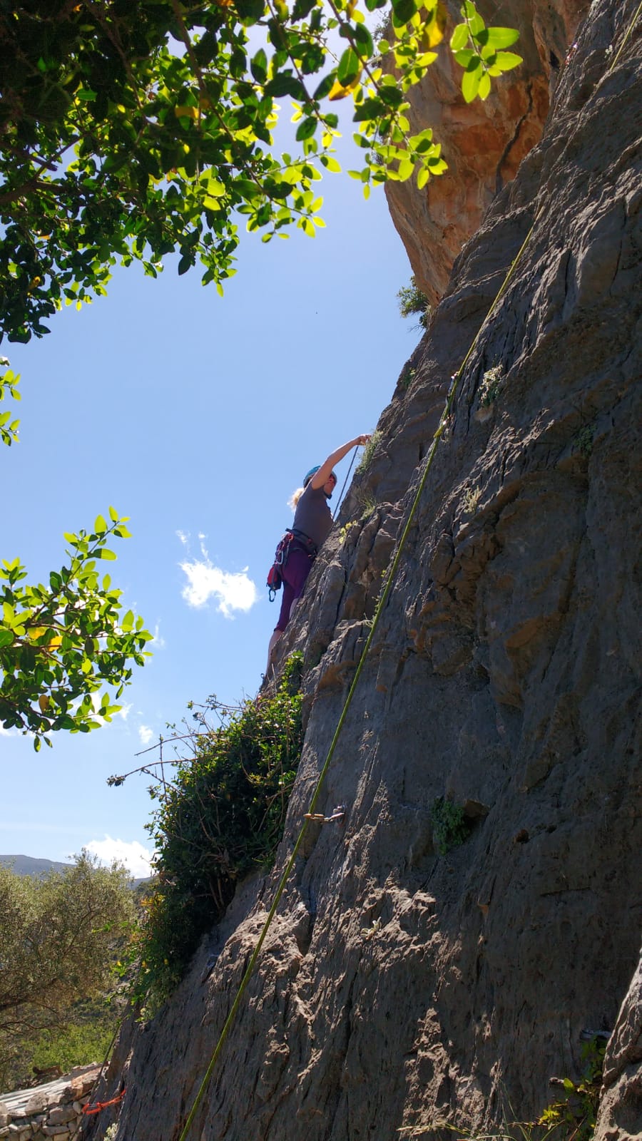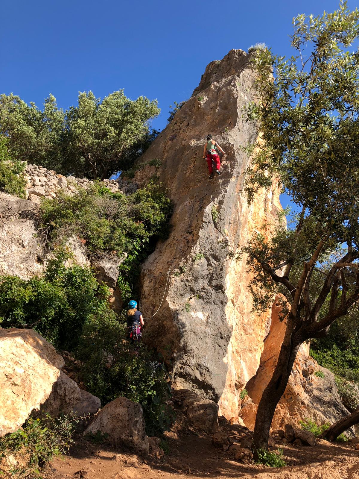 Nach einem ordentlichen Frühstück ging es zu Fuß zum Hausberg Kokkinovrachos Main, genauer gesagt Douvari. Um vor der Sonne und den Massen da zu sein, hieß es um 8 Uhr Abmarsch für den 30 Minütigen Aufstieg. Nach einer kurzen Verschnaufpause und einem Blick in den Kletterführer machten sich alle bereit für die ersten Routen. Für alle war etwas dabei und der Vormittag ging schnell vorbei. Ob im Vor- oder auch mal im Nachstieg, viele Routen von 4 bis 6b wurden von den Mädels begangen. Gegen 14 Uhr wurde es uns dann doch zu heiß und wir entschlossen uns zurück zum Haus zu gehen. Conny und Thea waren noch topmotiviert also ging es noch in Sektor Sabaton für ein paar Routen im Schatten und an etwas anderer Struktur.
