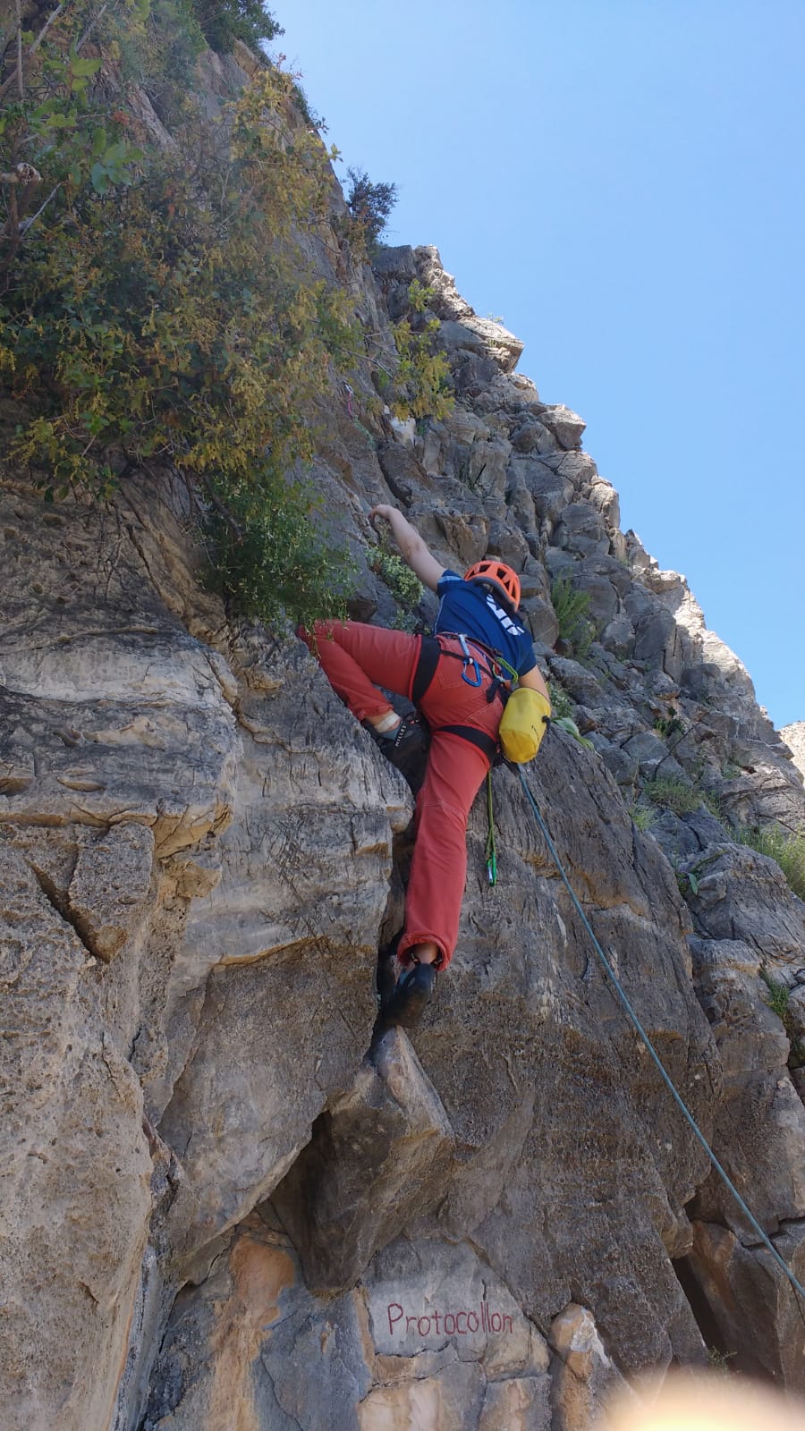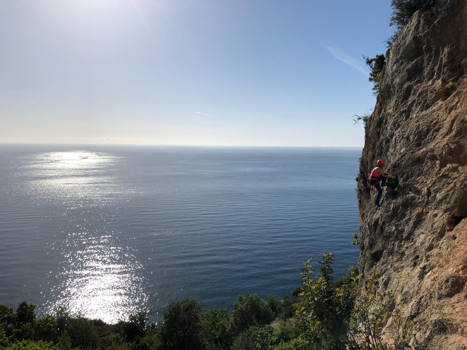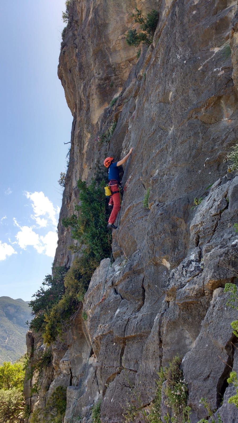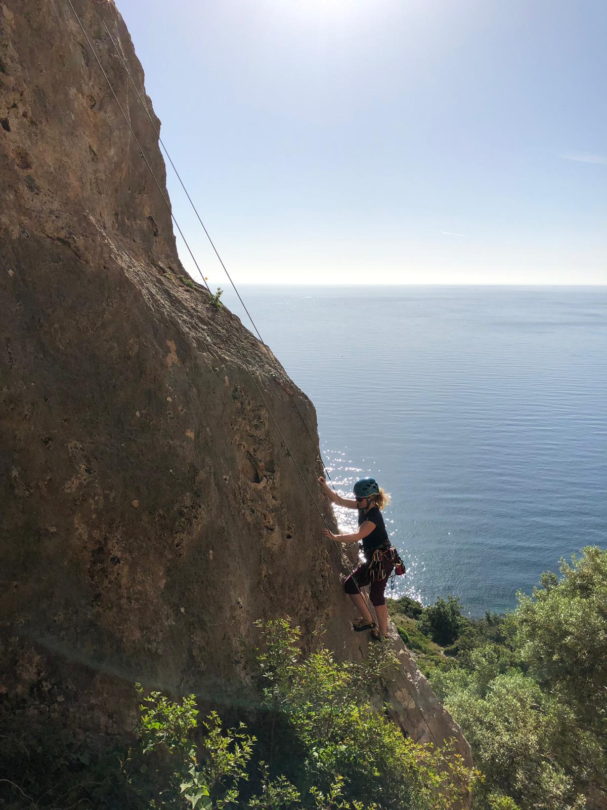 Nach einem ordentlichen Frühstück ging es zu Fuß zum Hausberg Kokkinovrachos Main, genauer gesagt Douvari. Um vor der Sonne und den Massen da zu sein, hieß es um 8 Uhr Abmarsch für den 30 Minütigen Aufstieg. Nach einer kurzen Verschnaufpause und einem Blick in den Kletterführer machten sich alle bereit für die ersten Routen. Für alle war etwas dabei und der Vormittag ging schnell vorbei. Ob im Vor- oder auch mal im Nachstieg, viele Routen von 4 bis 6b wurden von den Mädels begangen. Gegen 14 Uhr wurde es uns dann doch zu heiß und wir entschlossen uns zurück zum Haus zu gehen. Conny und Thea waren noch topmotiviert also ging es noch in Sektor Sabaton für ein paar Routen im Schatten und an etwas anderer Struktur.