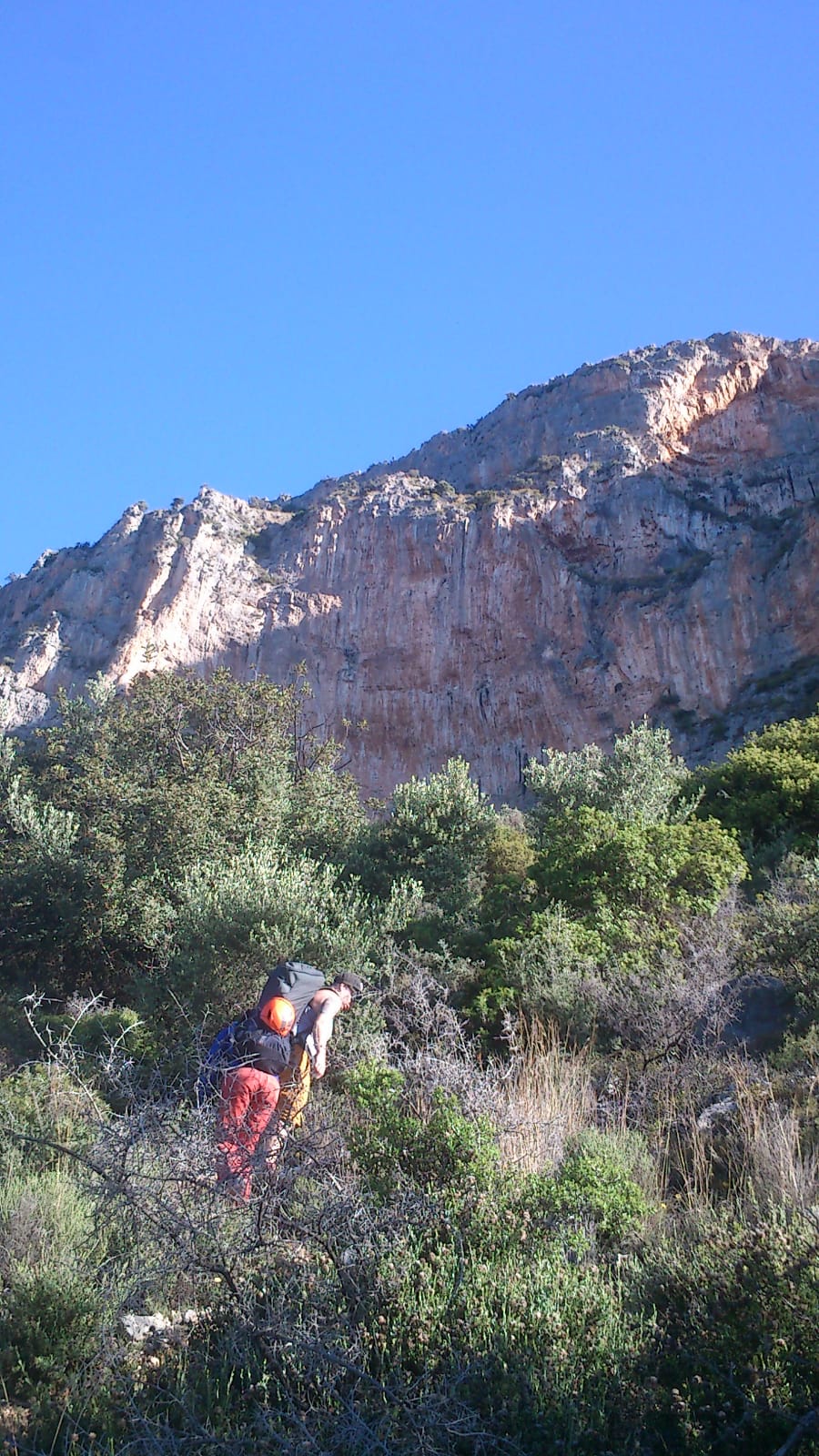 Da in Leonidio dieses Wochenende die Osterfeiertage waren, konnten wir den Reifen erst am Dienstag wechseln lassen und haben uns statt einer langen Anfahrt Ausschlafen gegönnt. Nach einem ausgiebigen Frühstück ging es dann zum Sektor Arésos. Dort erwarteten uns viele tolle Routen von 4 bis 6b+ in der Sonne, da der Fels erst ab ca 14 Uhr im Schatten ist. Also „wärmten“ wir uns an den kürzeren Touren auf, um dann nachmittags die langen Genusstouren im Schatten klettern zu können.