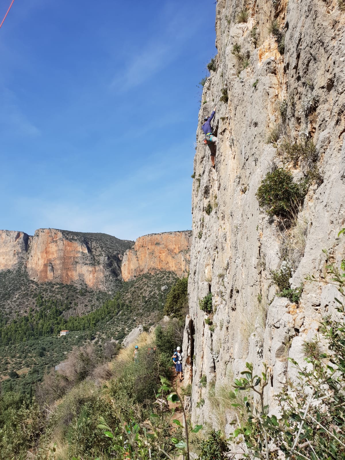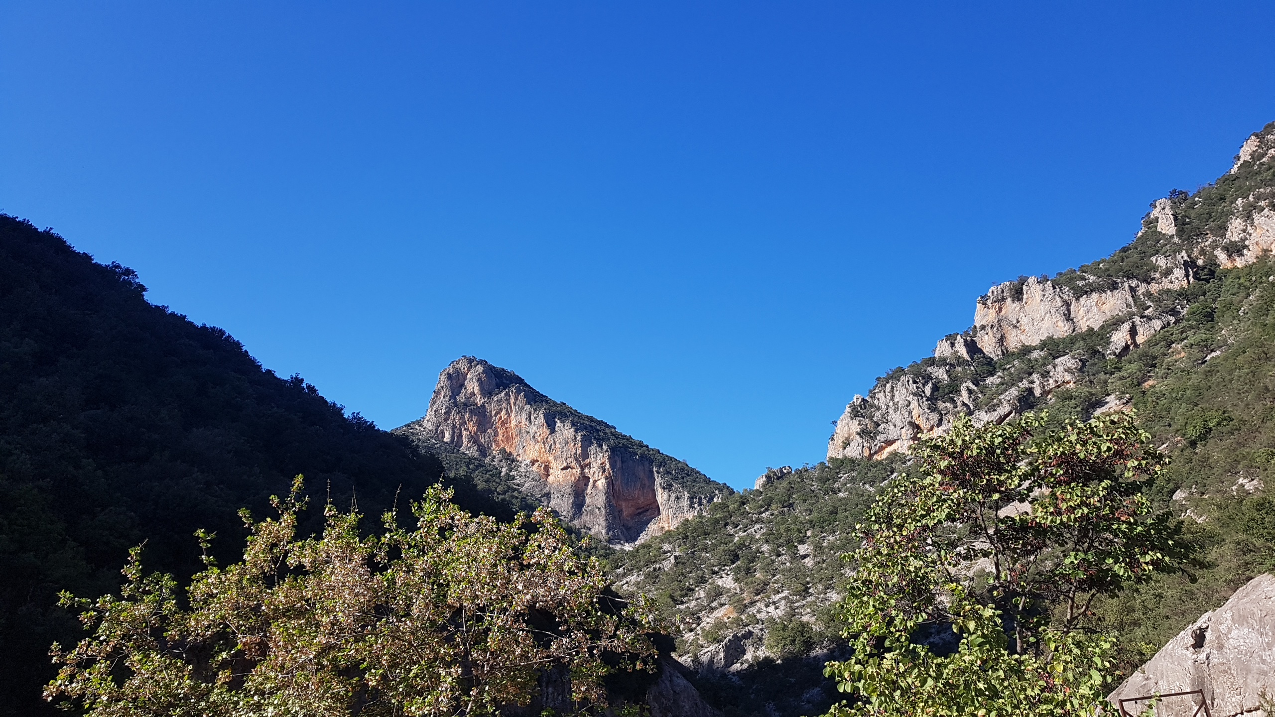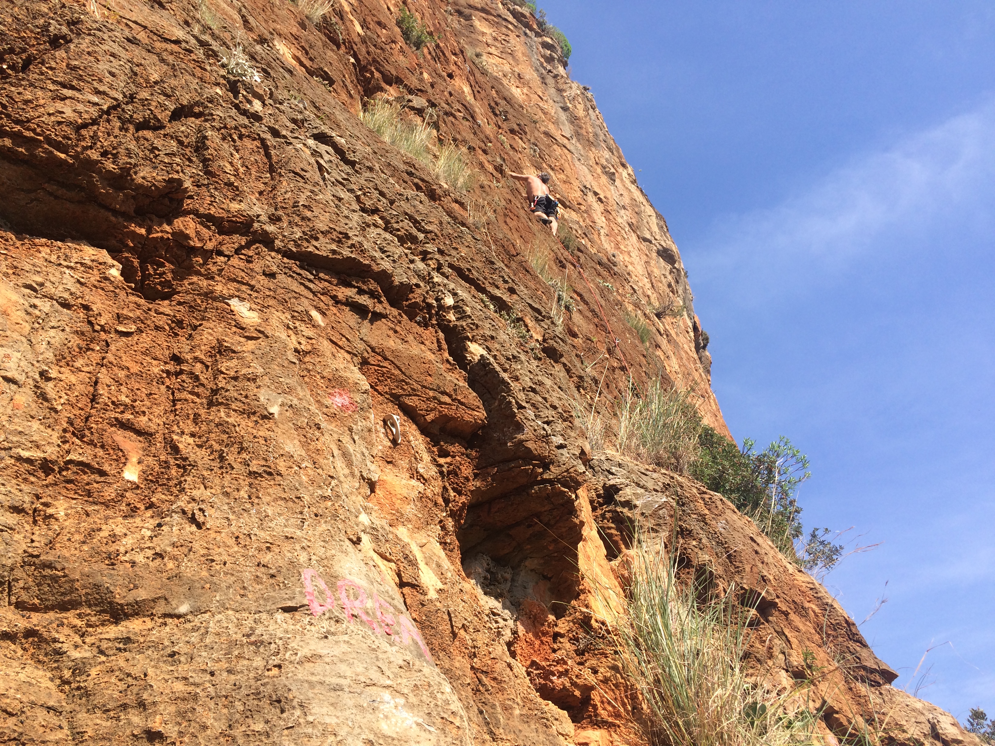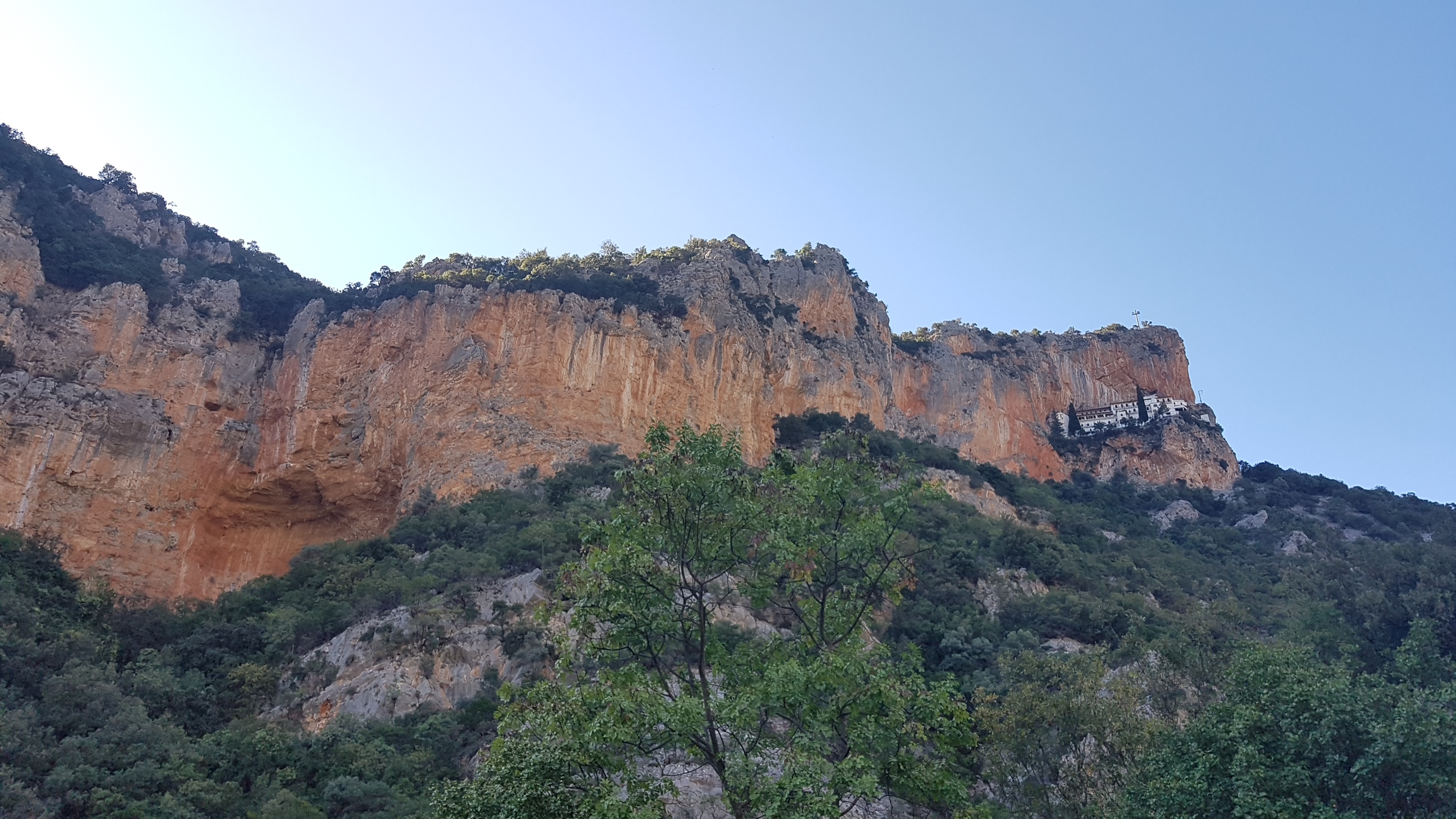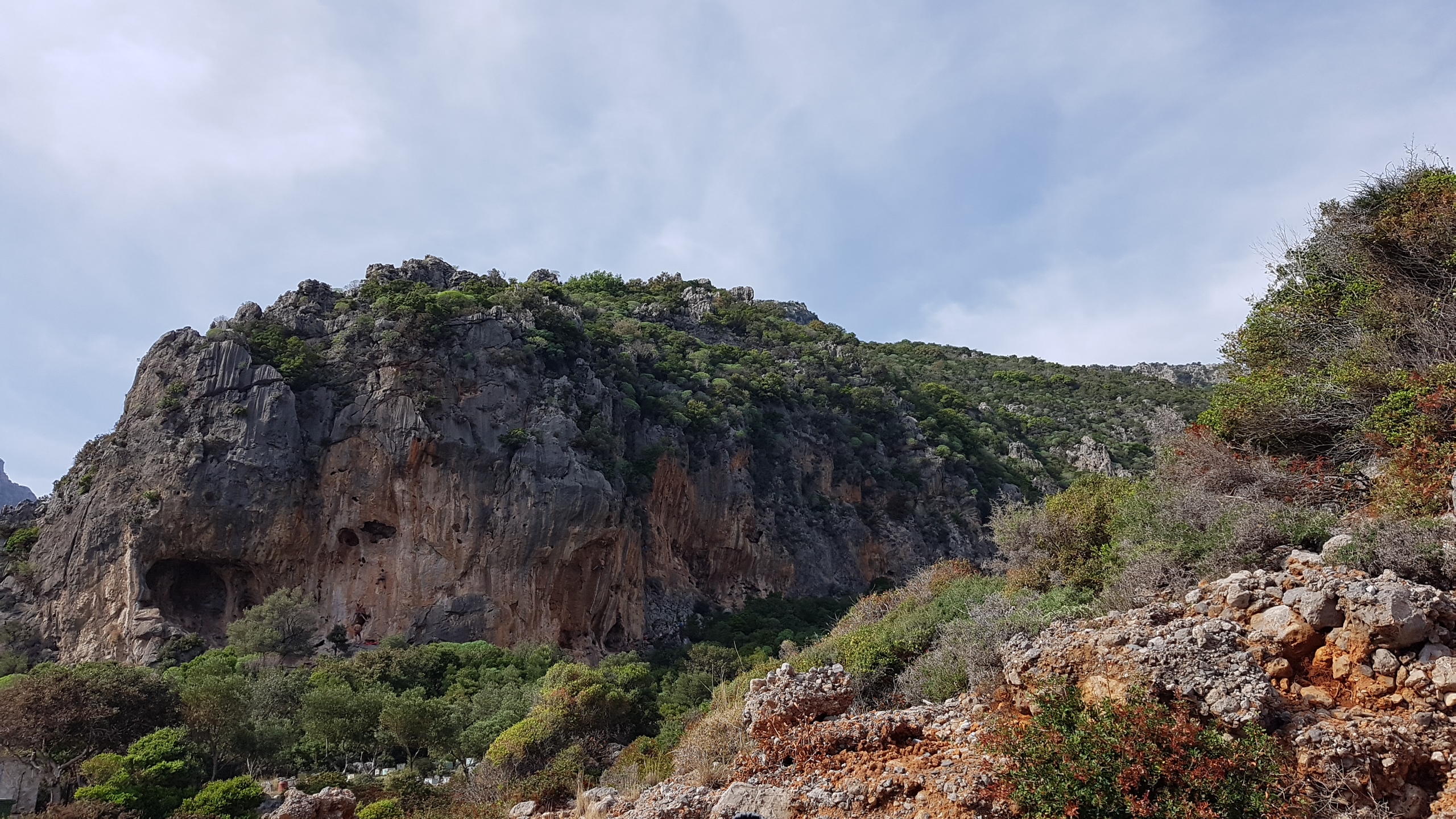 Am zweiten Klettertag ging es hoch hinaus zur Hauptwand Leonidios, dem alles überstrahlenden Riegel „Kokkinovrachos“. Er ist ist viele Untersektoren unterteilt und bietet sowohl ohne Ende Sportkletterrouten, aber auch viele Mehrseillängen, die für uns allerdings diesmal nicht von Interesse waren.