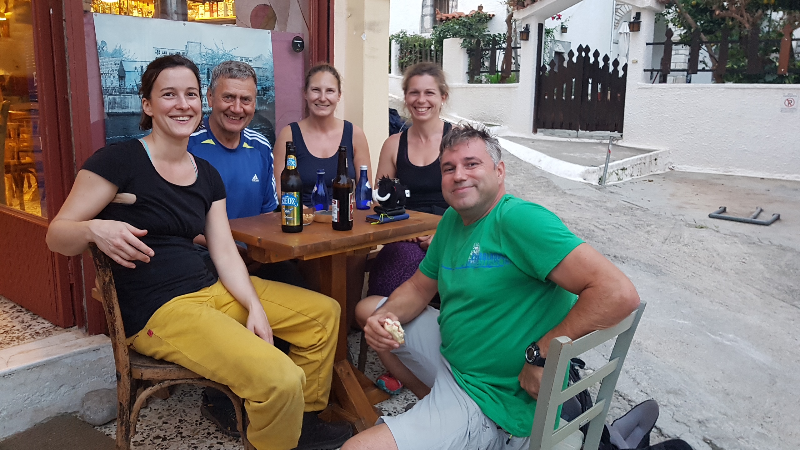 Nachdem wir uns wirklich schön müde geklettert, fast einen Sonnenstich bekommen und kein Wasser mehr hatten, musste wir uns vom wunderschönen Fels in Leonidio zu verabschieden und unseren letzten Abend zu genießen. Es ging also nochmal in den Nachbarort zum Myrtoon, lecker 🙂 Danach setzten wir uns noch gemütliche zu Hause zusammen und ließen diese wunderschöne Woche Revue passieren.