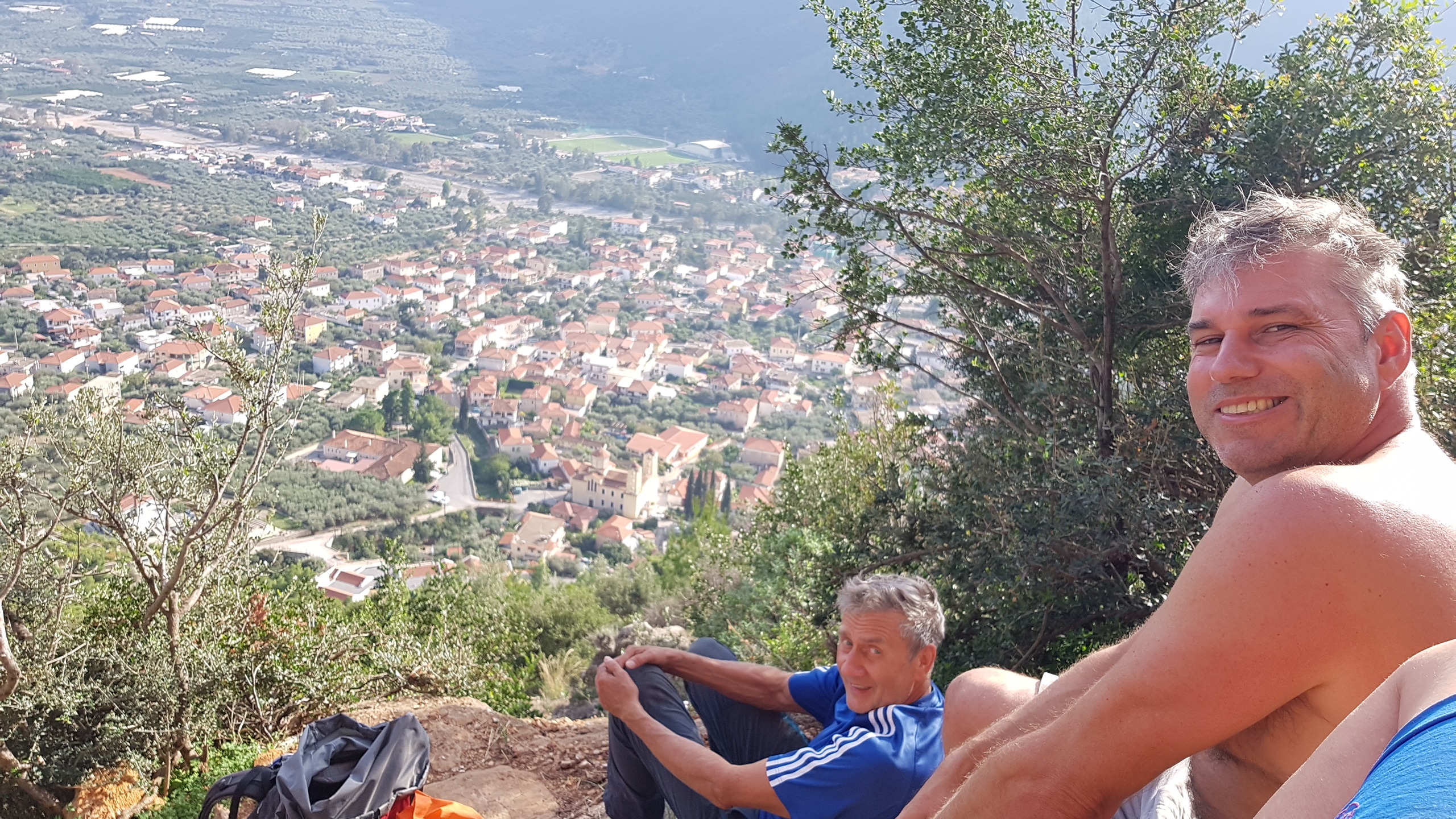 Danach fuhren wir runter in den Ort Kyparissi – also zunächst rauf, durch die Örtchen und Schlängelstraßen durch, dann wieder runter – und kehrten in einer kleinen Taverne zu einem Abendessen ein. Das fanden wir jetzt nicht so berauschend, kulinarisch müssten sie da in dem einen oder anderen Restaurant noch zulegen, aber gut. Die Heimfahrt ging zum Glück problemlos, aber wir waren dann doch alle sehr froh müde und spät am Abend in unsere Betten fallen zu können. Morgen stand ja wieder Klettern am Programm!
