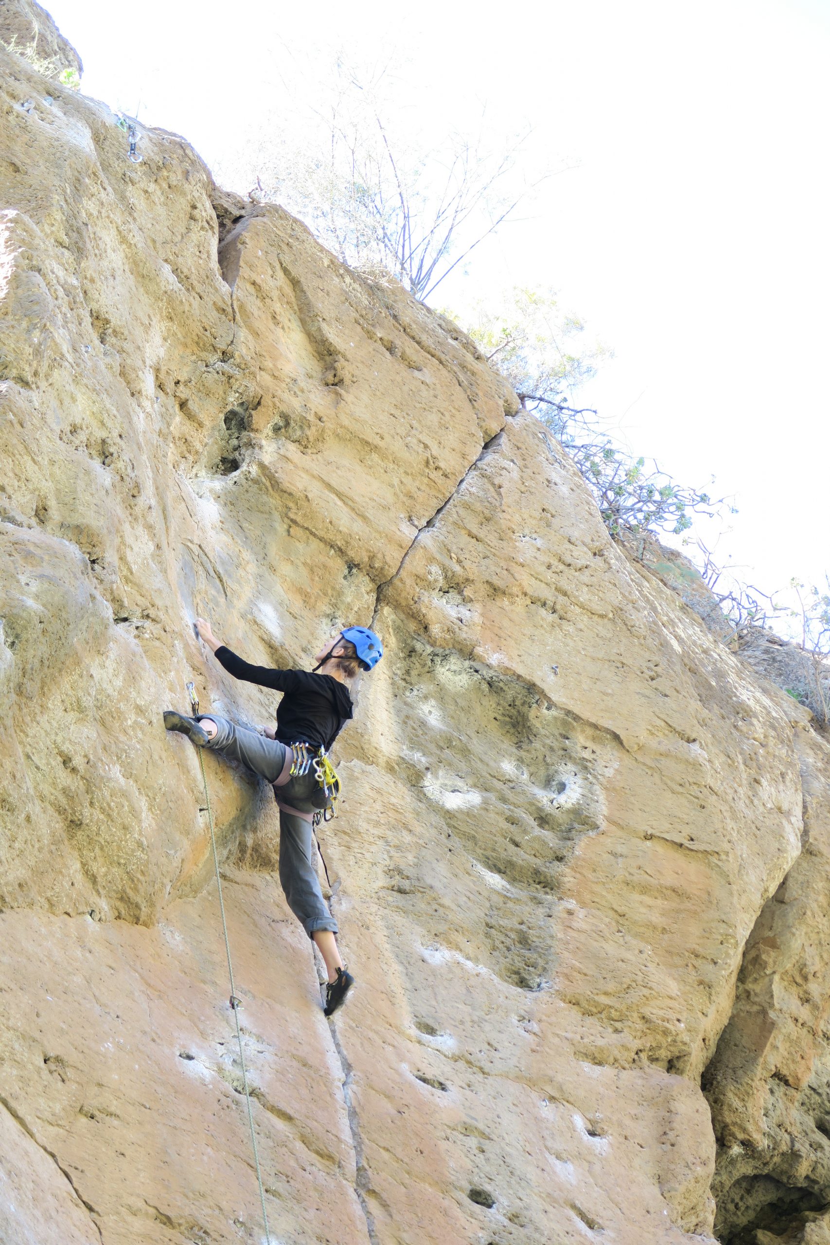 Britta und Evi versuchten sich noch in den kürzeren „La Quilla“ (6a+), „Coyote cojo“ (6b) und später „Capricornio“ (5+), während Caroline top motiviert in „Diez anos despues“ (6b+) einstieg. Die Motivation hat sogar noch für Stine gereicht, um die Tour im Toprope zu gehen.