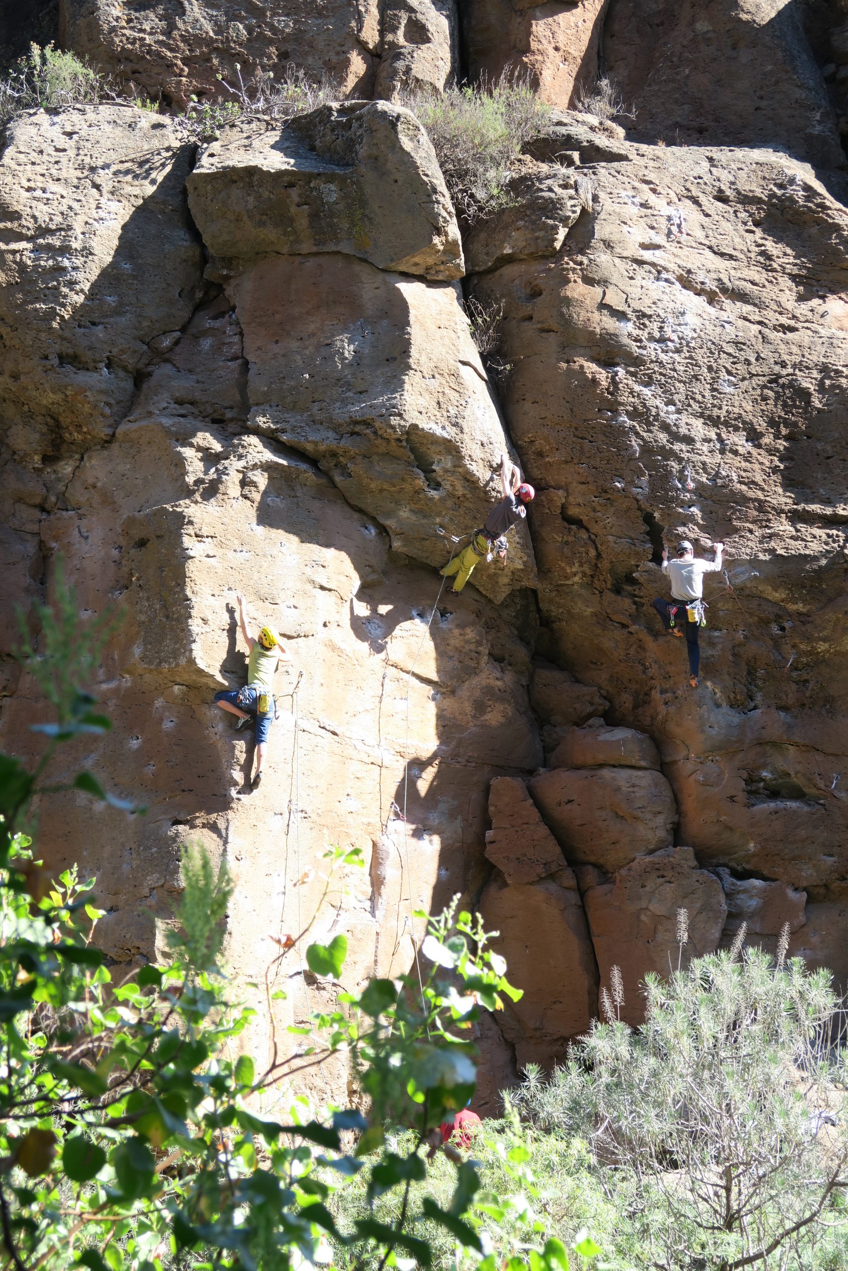 Das „Gurr, Gurr“ und das Schlagen der Taubenflügel begleiteten uns den ganzen Tag im Sektor. Wir starteten ganz entspannt an den kurzen Touren „Yertoman“ (5), „Sin animo de lucro, sin animo de etica“ (5-), „El quinto de Clark“ (5), „Asi pone el ayuntamiento los bancos“ (5-).
