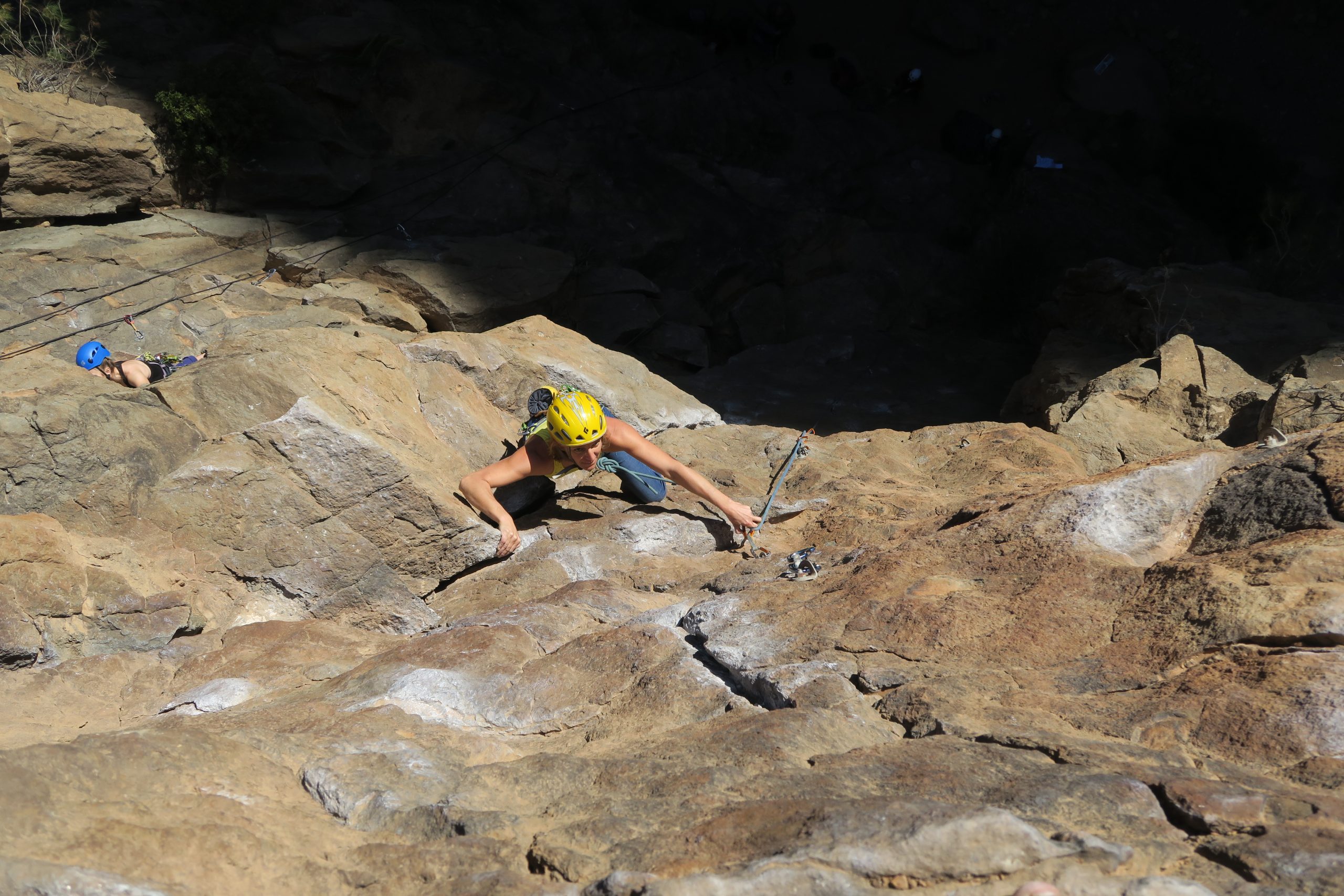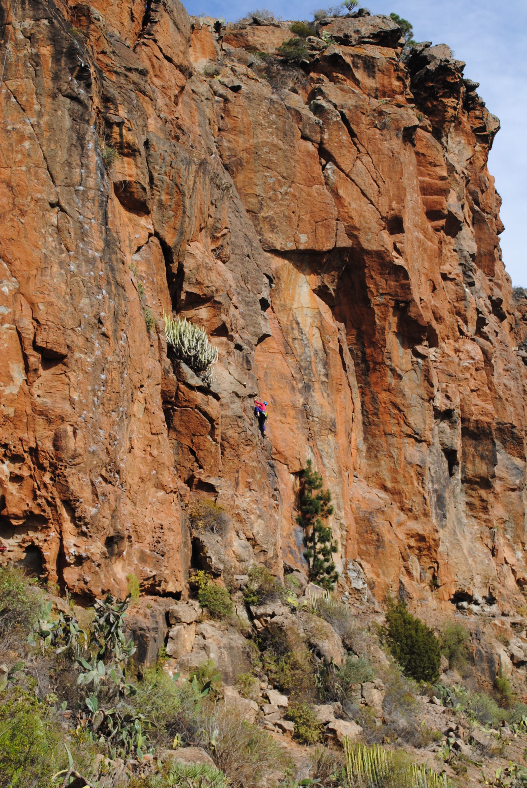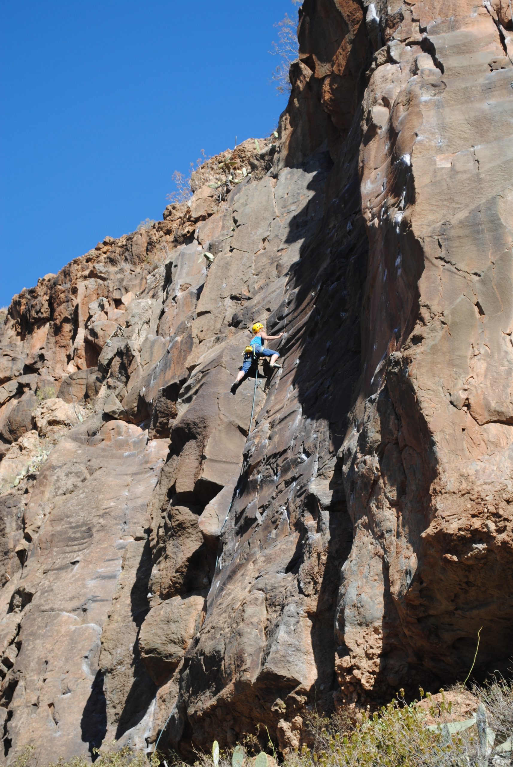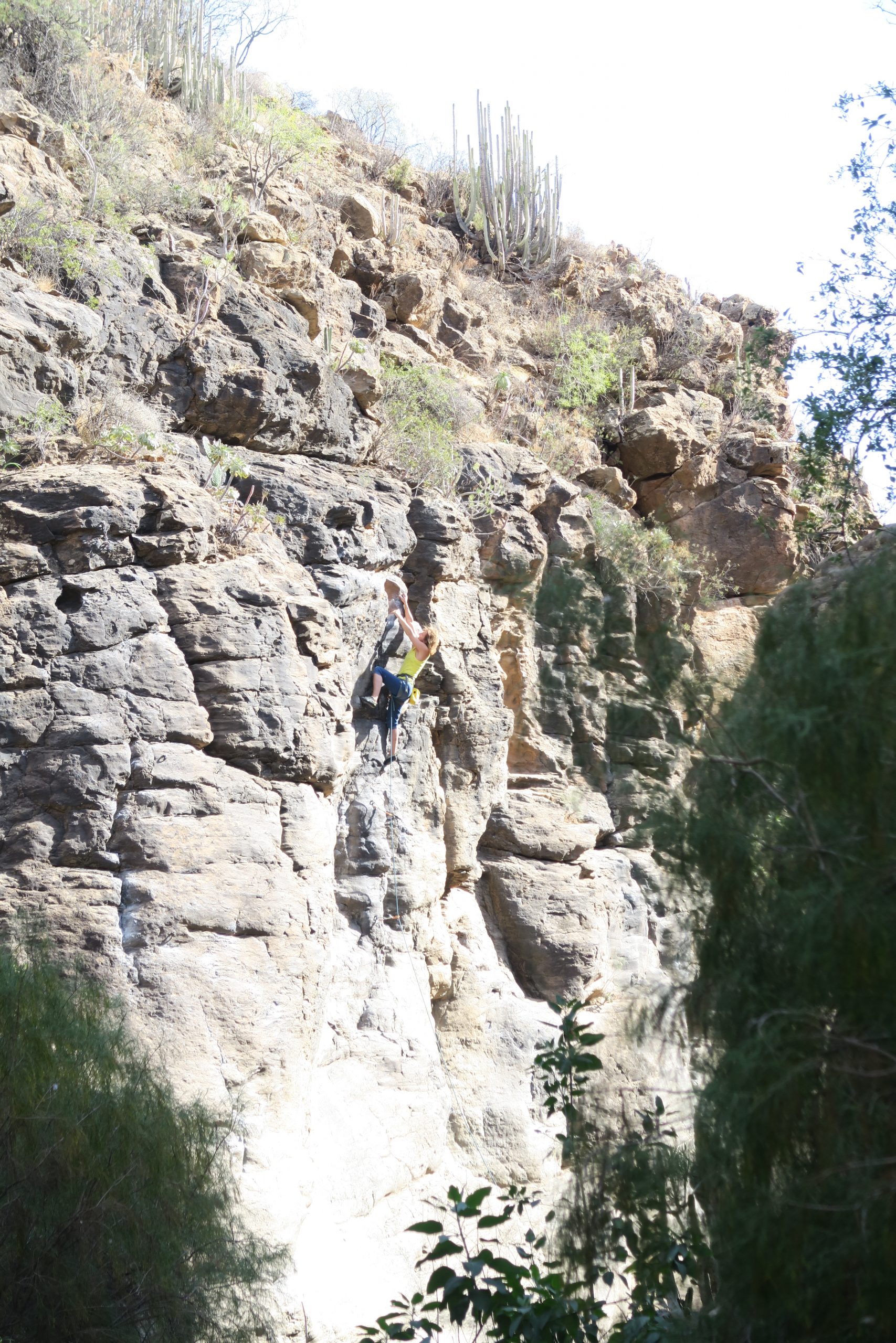Caroline blieb lieber im Schatten und kletterte zack zack „Desprecio a la envergadura“ (5), „Espolon del rampa“ (6a) und „pena de lunes“ (6b), Stina ging mutig mit eingehängtem Seil hinterher.